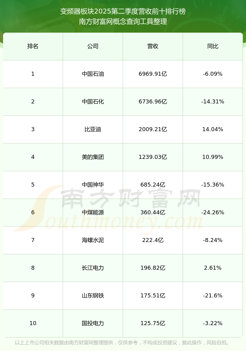 按照南方財(cái)富網(wǎng)概念查詢(xún)工具統(tǒng)計(jì),該股所屬板塊為變頻器板塊,該板塊共有68只股票,正弦電氣2025第二季度營(yíng)收在該板塊中排名為第64名,該板塊2025第二季度營(yíng)收排名前十的股票如下表: