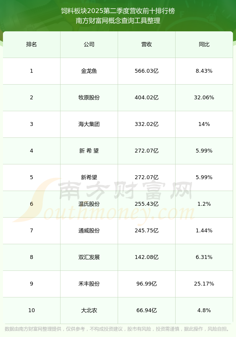 按照南方財富網(wǎng)概念查詢工具統(tǒng)計,該股所屬板塊為飼料板塊,該板塊共有70只股票,天馬科技2025第二季度營收在該板塊中排名為第33名,該板塊2025第二季度營收排名前十的股票如下表: