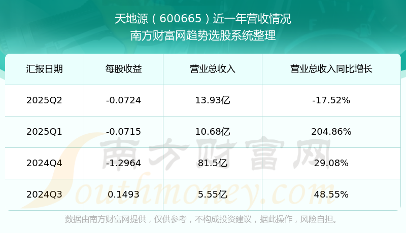 一、天地源(600665)股票營收情況