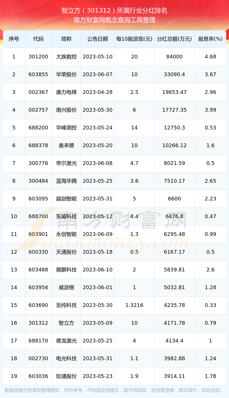二、智立方301312行業(yè)分紅排名