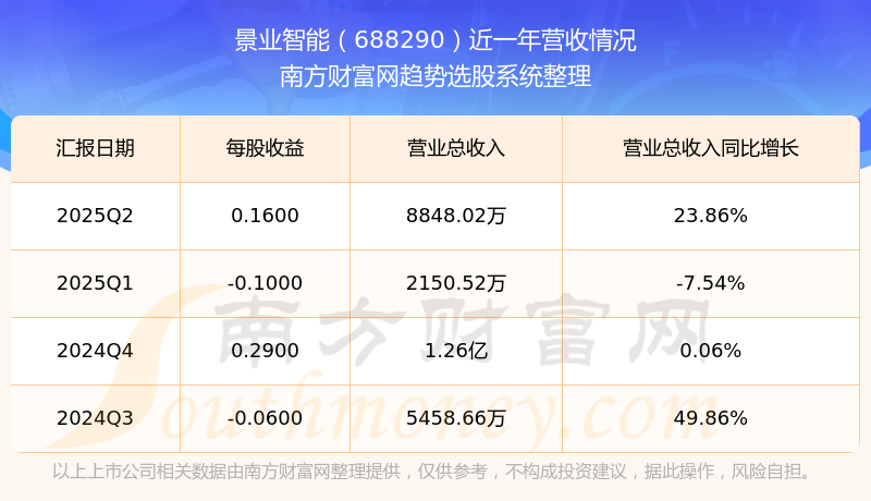一、景業(yè)智能(688290)股票營(yíng)收情況