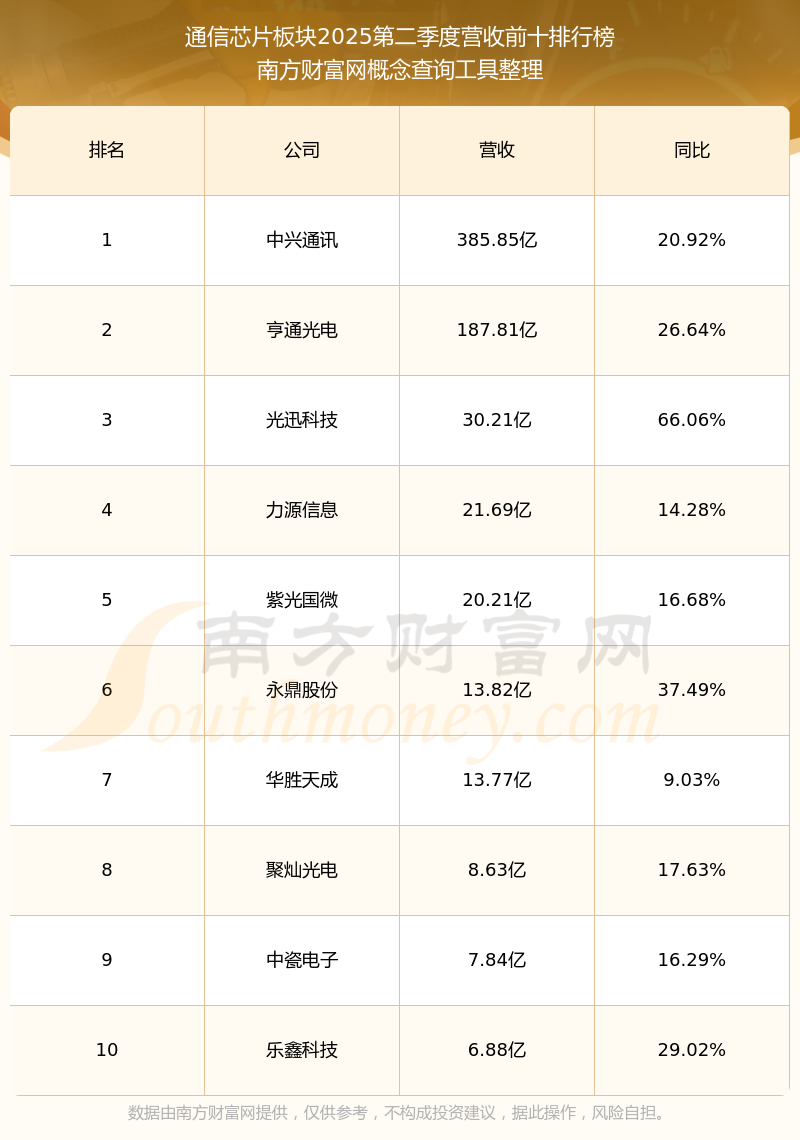 按照南方財富網(wǎng)概念查詢工具統(tǒng)計,該股所屬板塊為通信芯片板塊,該板塊共有25只股票,創(chuàng)耀科技2025第二季度營收在該板塊中排名為第25名,該板塊2025第二季度營收排名前十的股票如下表:
