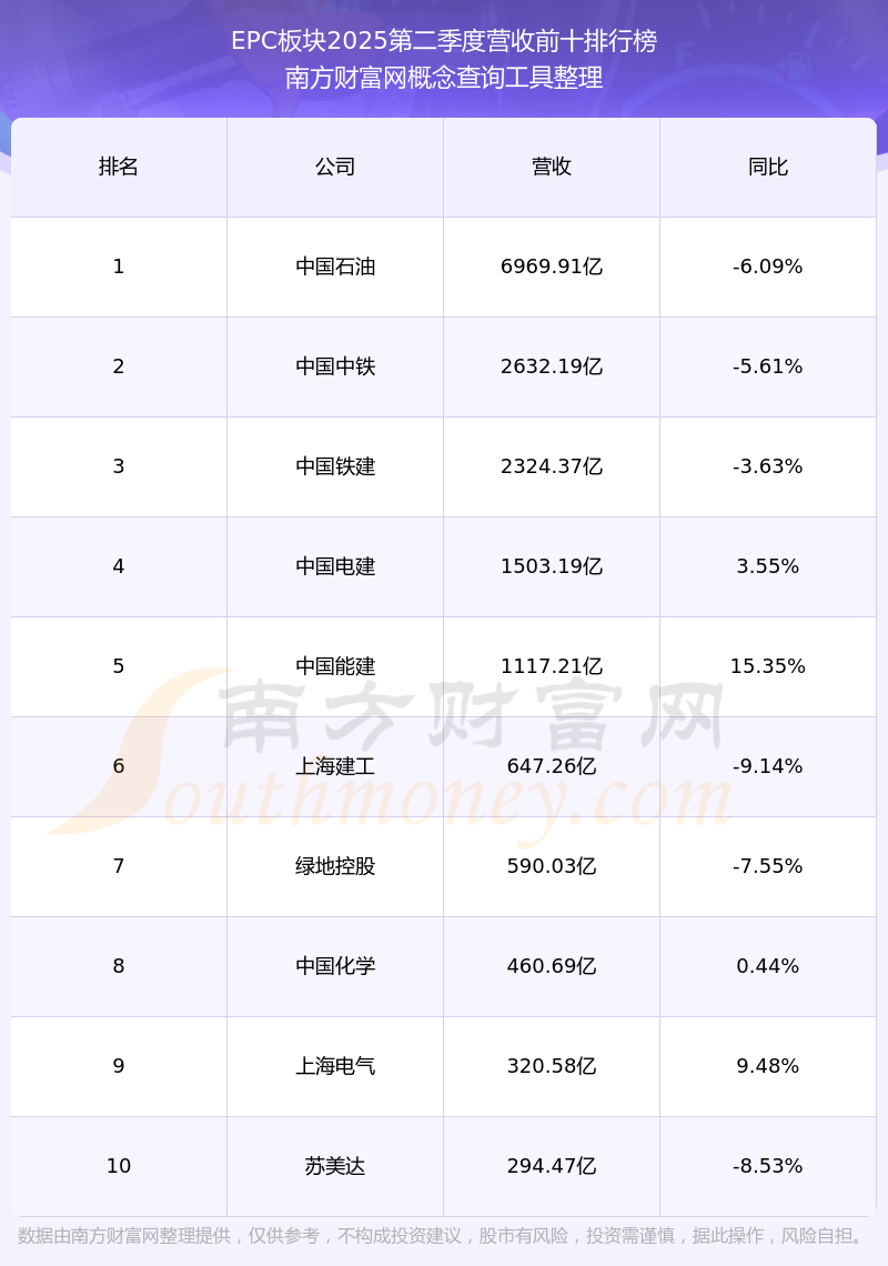 按照南方財(cái)富網(wǎng)概念查詢工具統(tǒng)計(jì),該股所屬板塊為EPC板塊,該板塊共有151只股票,晶科科技2025第二季度營(yíng)收在該板塊中排名為第151名,該板塊2025第二季度營(yíng)收排名前十的股票如下表: