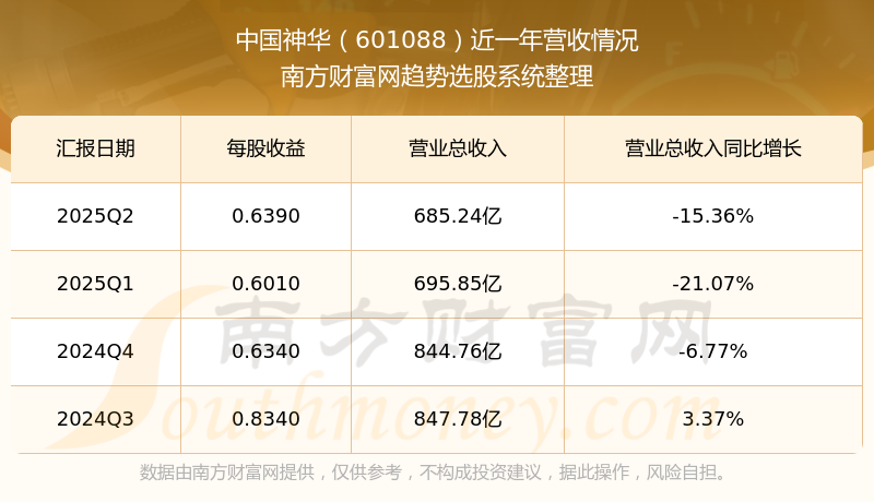 中國神華股票近一年營收情況如下表: