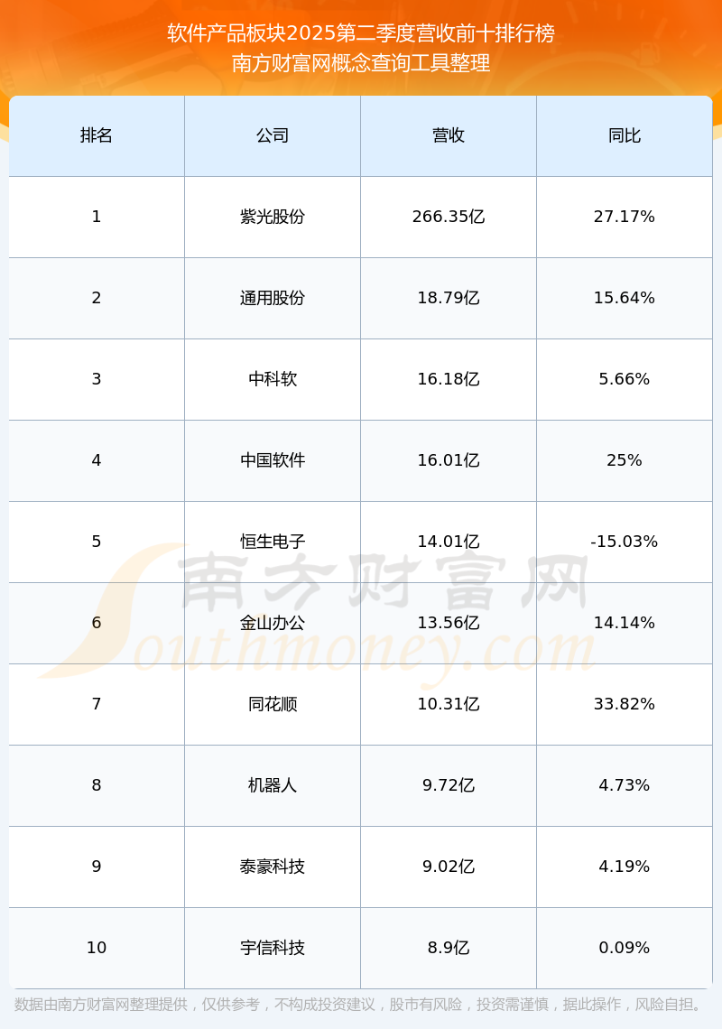 按照南方財(cái)富網(wǎng)概念查詢(xún)工具統(tǒng)計(jì),該股所屬板塊為軟件產(chǎn)品板塊,該板塊共有28只股票,星環(huán)科技2025第二季度營(yíng)收在該板塊中排名為第28名,該板塊2025第二季度營(yíng)收排名前十的股票如下表: