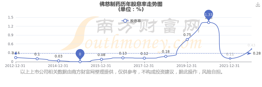 近年佛慈制藥年度股息率走勢如下圖: