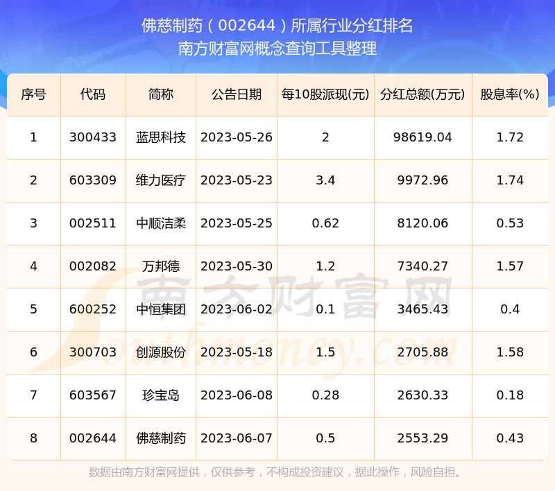 二、佛慈制藥002644行業(yè)分紅排名