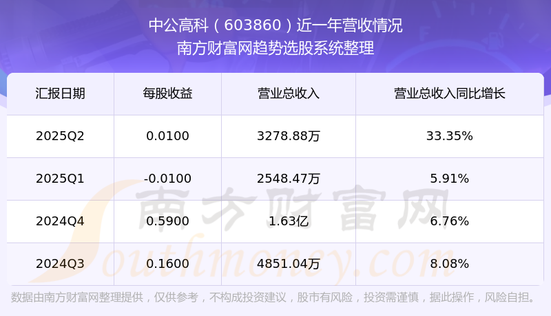 中公高科2025年第二季度顯示,公司主營收入3278.88萬元,同比33.35%;歸母凈利潤4.46萬元,同比106.47%;扣非凈利潤6.07萬元,同比104.88%;