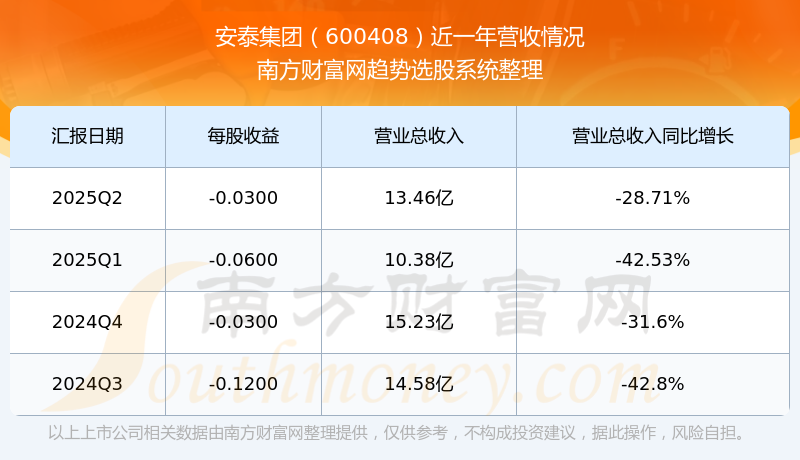 安泰集團股票近一年營收情況如下表: