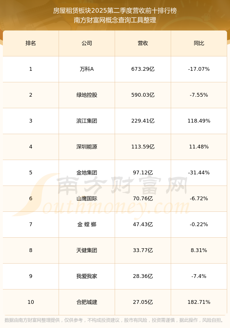 按照南方財(cái)富網(wǎng)概念查詢工具統(tǒng)計(jì),該股所屬板塊為房屋租賃板塊,該板塊共有31只股票,匯通能源2025第二季度營收在該板塊中排名為第30名,該板塊2025第二季度營收排名前十的股票如下表: