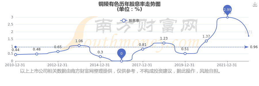 近年銅陵有色年度股息率走勢如下圖: