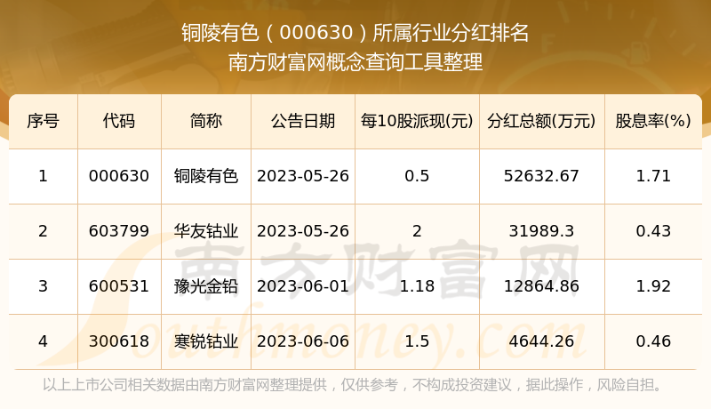 二、銅陵有色000630行業(yè)分紅排名