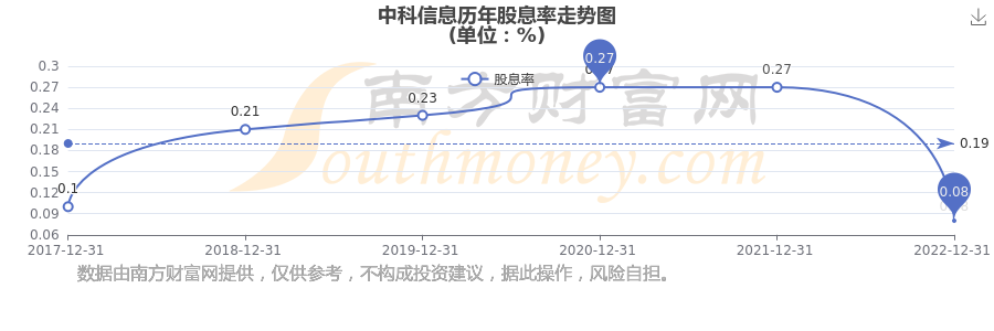 近年中科信息年度股息率走勢如下圖: