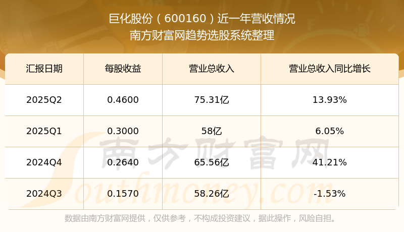 巨化股份股票近一年營收情況如下表: