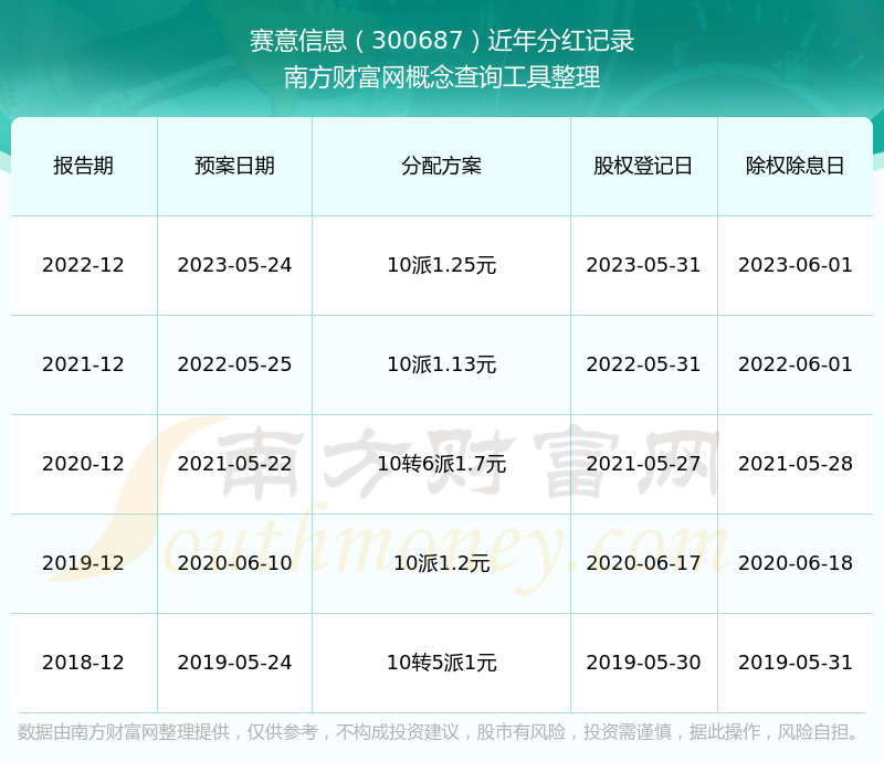 近年賽意信息分紅情況如下表所示: