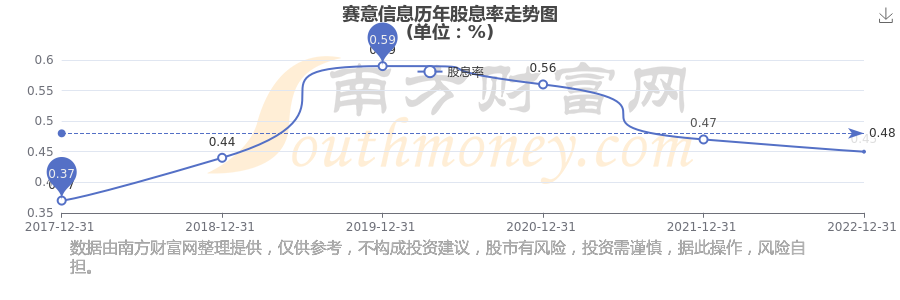 近年賽意信息年度股息率走勢如下圖: