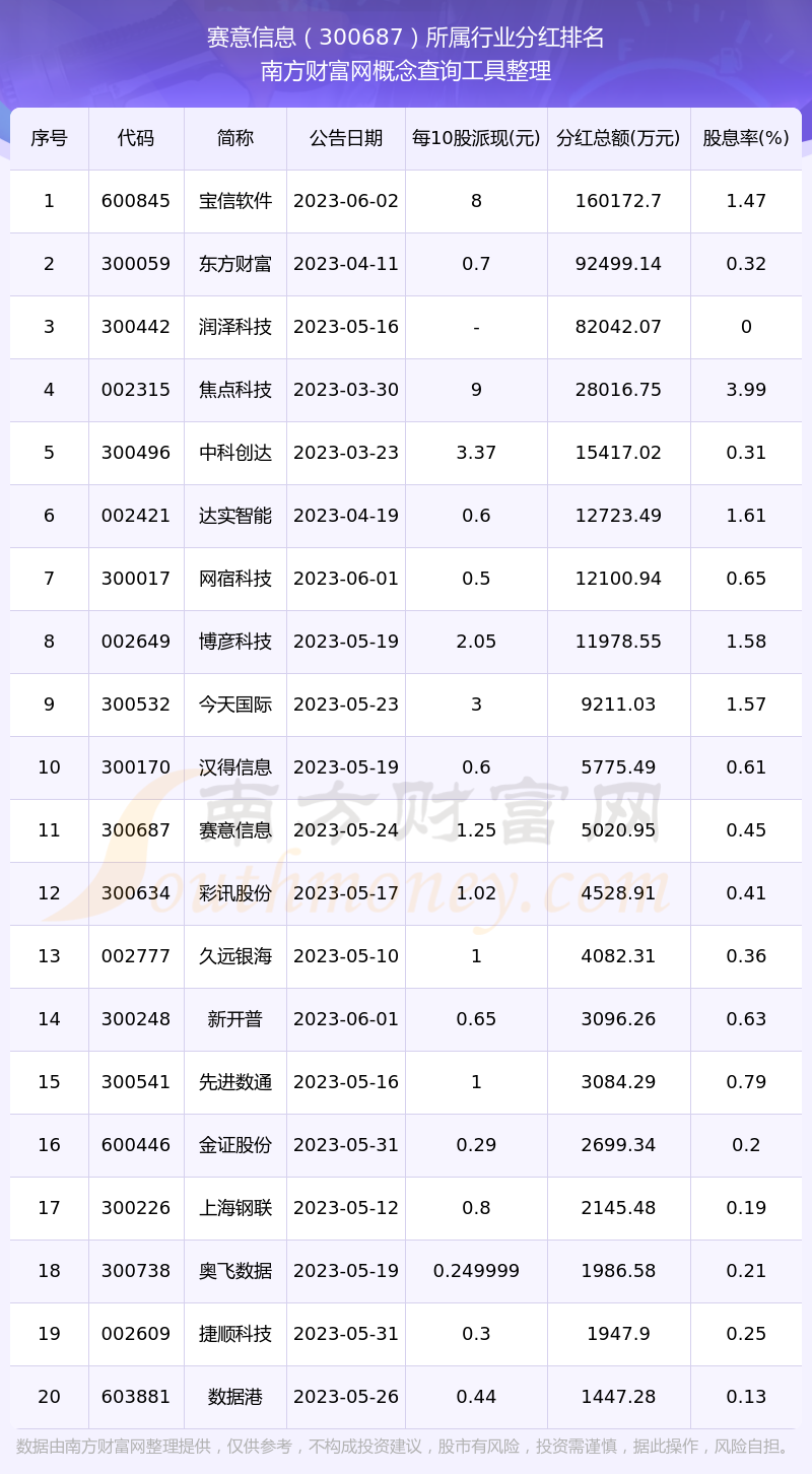 二、賽意信息300687行業(yè)分紅排名