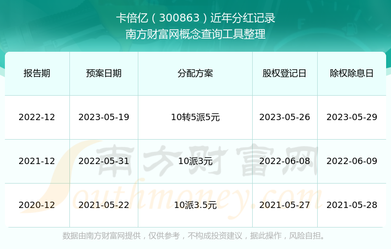 卡倍億最新一次公布的分紅方案:10轉(zhuǎn)5派5元。