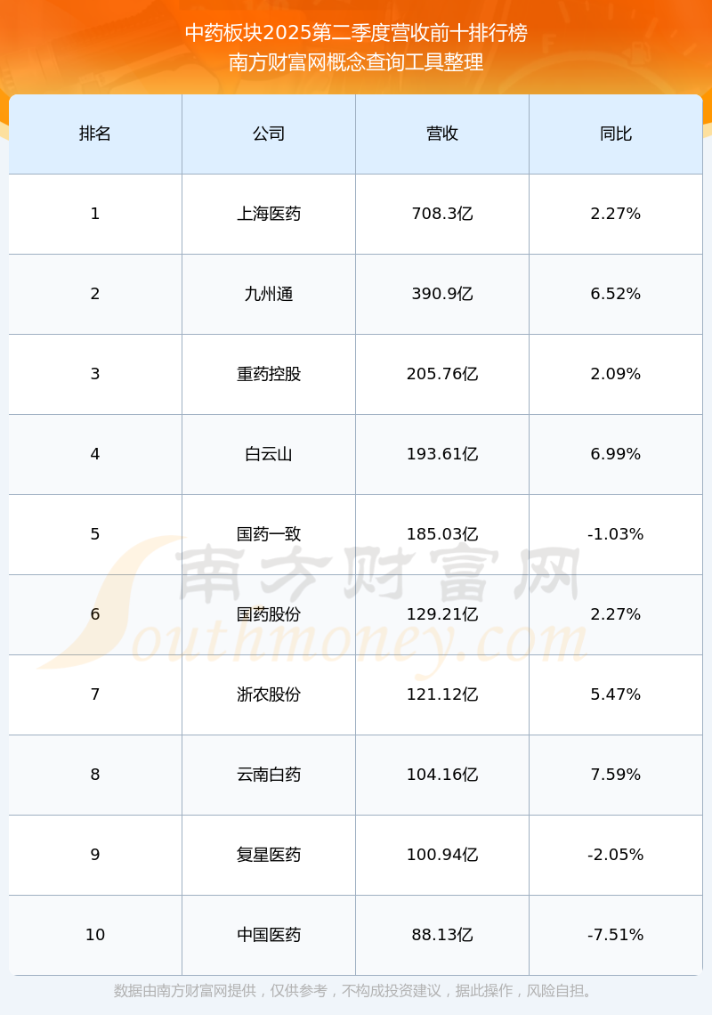 按照南方財富網(wǎng)概念查詢工具統(tǒng)計,該股所屬板塊為中藥板塊,該板塊共有163只股票,中恒集團(tuán)2025第二季度營收在該板塊中排名為第69名,該板塊2025第二季度營收排名前十的股票如下表:
