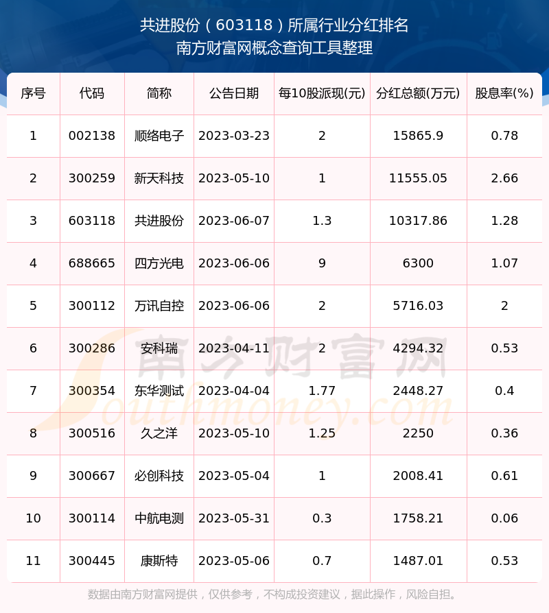 二、共進(jìn)股份603118行業(yè)分紅排名