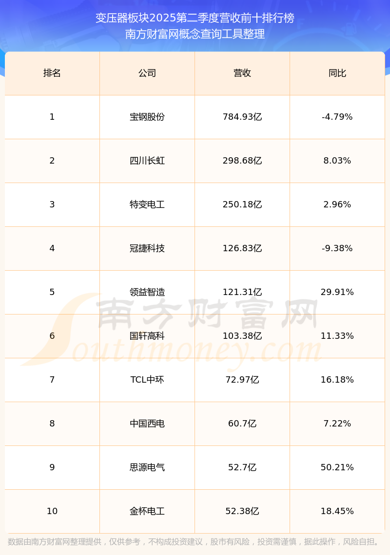 按照南方財(cái)富網(wǎng)概念查詢工具統(tǒng)計(jì),該股所屬板塊為變壓器板塊,該板塊共有77只股票,中國(guó)西電2025第二季度營(yíng)收在該板塊中排名為第8名,該板塊2025第二季度營(yíng)收排名前十的股票如下表: