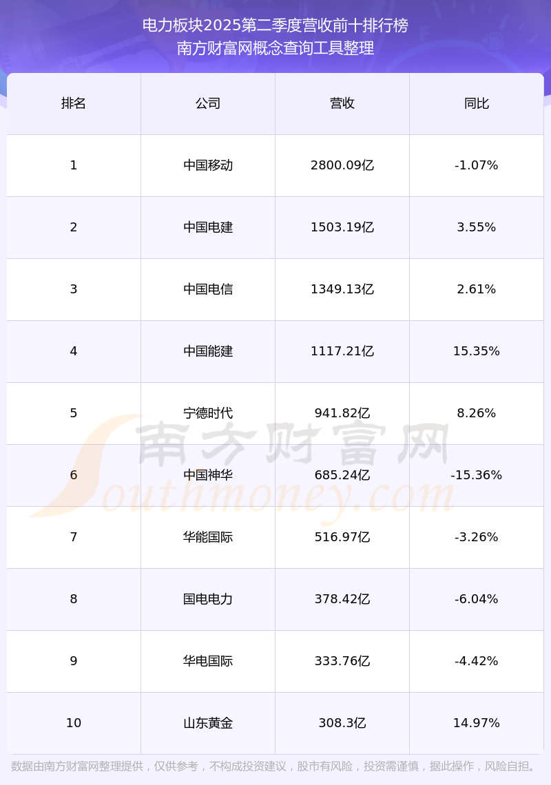 按照南方財富網(wǎng)概念查詢工具統(tǒng)計,該股所屬板塊為電力板塊,該板塊共有239只股票,西昌電力2025第二季度營收在該板塊中排名為第187名,該板塊2025第二季度營收排名前十的股票如下表: