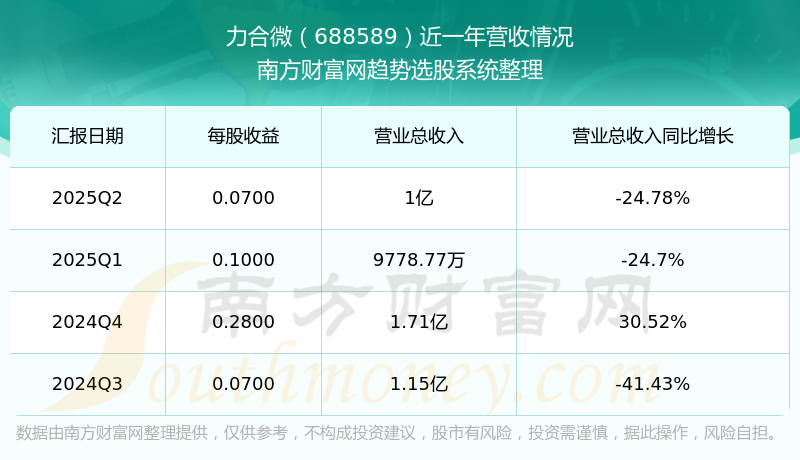 2025年第二季度,力合微營收同比-24.78%,凈利潤同比-35.03%。