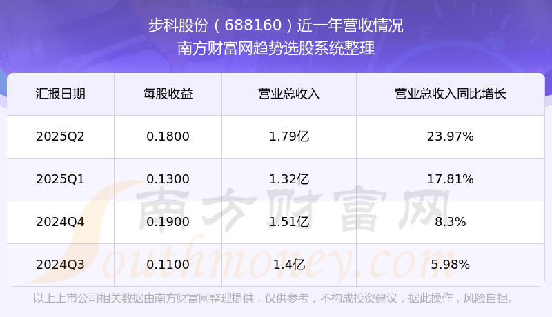 步科股份發(fā)布2025年第二季度財(cái)報(bào)。實(shí)現(xiàn)總營收1.79億元,同比增長23.97%;扣非凈利潤同比增長27.14%至1267.33萬元。