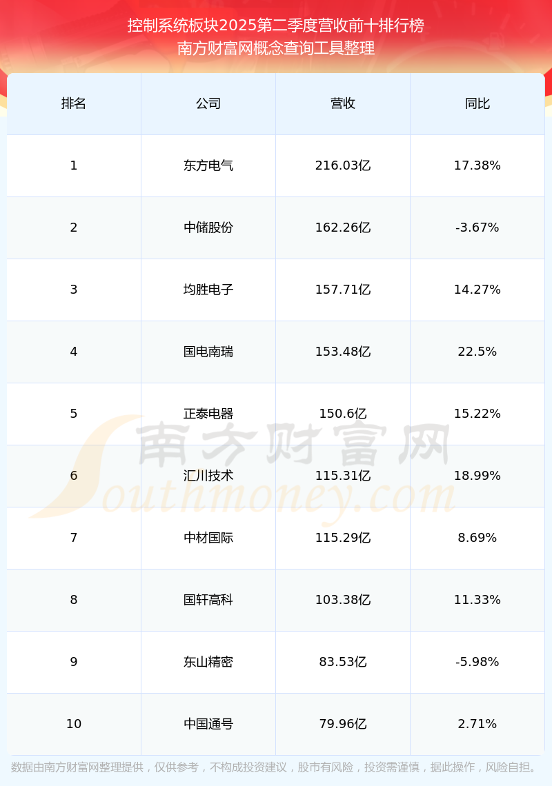 按照南方財(cái)富網(wǎng)概念查詢工具統(tǒng)計(jì),該股所屬板塊為控制系統(tǒng)板塊,該板塊共有196只股票,步科股份2025第二季度營收在該板塊中排名為第159名,該板塊2025第二季度營收排名前十的股票如下表: