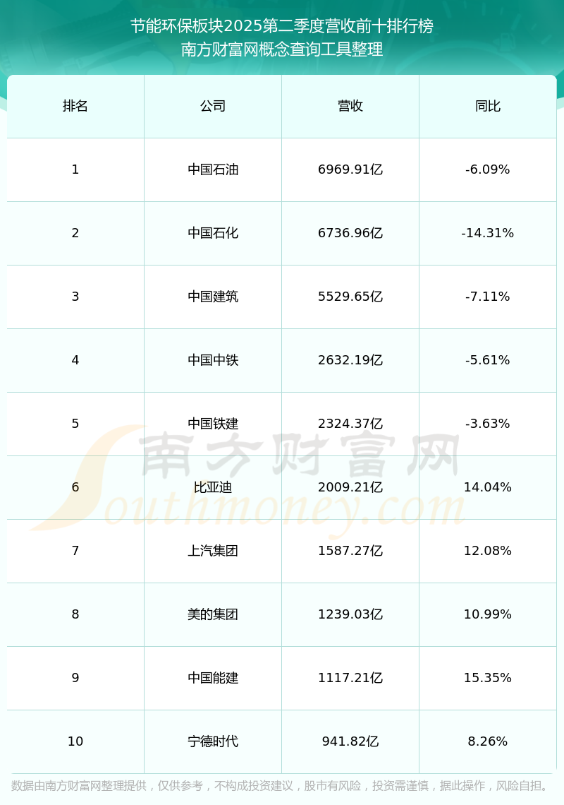 按照南方財(cái)富網(wǎng)概念查詢工具統(tǒng)計(jì),該股所屬板塊為節(jié)能環(huán)保板塊,該板塊共有626只股票,瀚藍(lán)環(huán)境2025第二季度營(yíng)收在該板塊中排名為第100名,該板塊2025第二季度營(yíng)收排名前十的股票如下表: