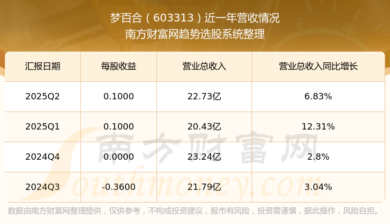 一、夢(mèng)百合(603313)股票營(yíng)收情況