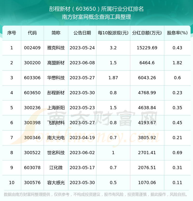二、彤程新材603650行業(yè)分紅排名