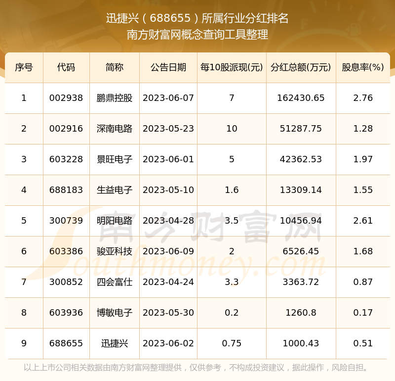 二、迅捷興688655行業(yè)分紅排名