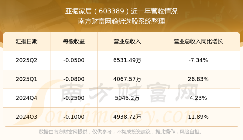 按照南方財(cái)富網(wǎng)概念查詢工具統(tǒng)計(jì),該股所屬板塊為裝修建材板塊,該板塊共有82只股票,亞振家居2025第二季度營收在該板塊中排名為第82名,該板塊2025第二季度營收排名前十的股票如下表: