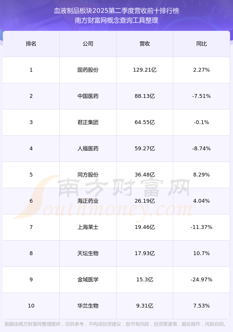 按照南方財富網(wǎng)概念查詢工具統(tǒng)計,該股所屬板塊為血液制品板塊,該板塊共有20只股票,天壇生物2025第二季度營收在該板塊中排名為第8名,該板塊2025第二季度營收排名前十的股票如下表: