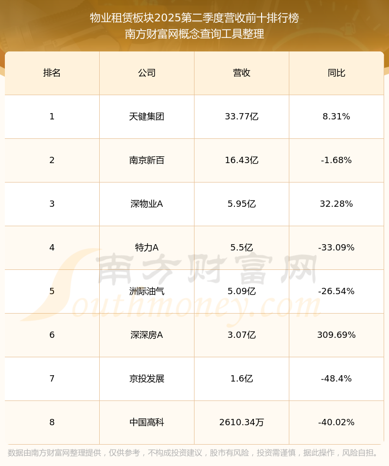 按照南方財(cái)富網(wǎng)概念查詢工具統(tǒng)計(jì),該股所屬板塊為物業(yè)租賃板塊,該板塊共有8只股票,中國國貿(mào)2025第二季度營(yíng)收在該板塊中排名為第8名,該板塊2025第二季度營(yíng)收排名前十的股票如下表: