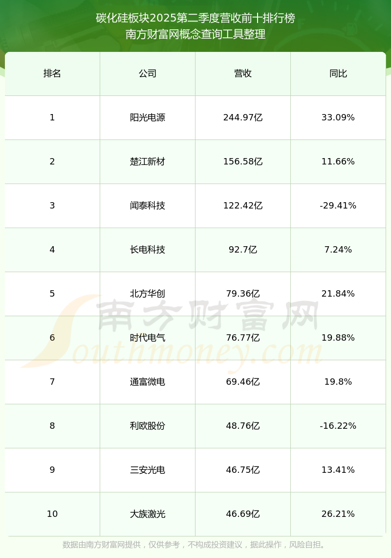 按照南方財(cái)富網(wǎng)概念查詢工具統(tǒng)計(jì),該股所屬板塊為碳化硅板塊,該板塊共有94只股票,東尼電子2025第二季度營收在該板塊中排名為第60名,該板塊2025第二季度營收排名前十的股票如下表: