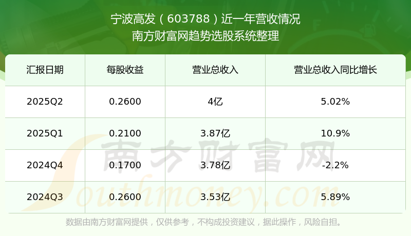 一、寧波高發(fā)(603788)股票營收情況