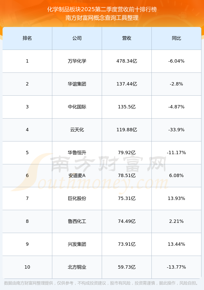 按照南方財(cái)富網(wǎng)概念查詢工具統(tǒng)計(jì),該股所屬板塊為化學(xué)制品板塊,該板塊共有226只股票,常青科技2025第二季度營收在該板塊中排名為第168名,該板塊2025第二季度營收排名前十的股票如下表: