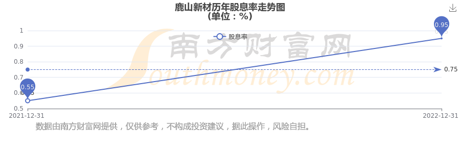近年鹿山新材年度股息率走勢(shì)如下圖: