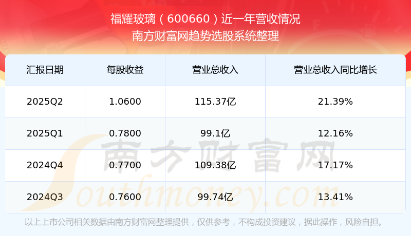 福耀玻璃2025年第二季度公司實(shí)現(xiàn)營(yíng)業(yè)收入115.37億元,同比21.39%;歸母凈利潤(rùn)27.75億元,同比31.47%。