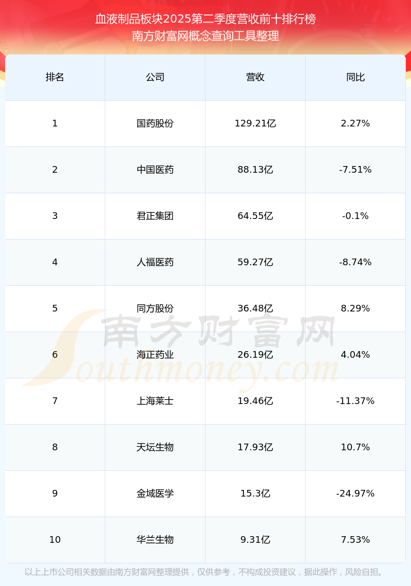 按照南方財(cái)富網(wǎng)概念查詢工具統(tǒng)計(jì),該股所屬板塊為血液制品板塊,該板塊共有20只股票,天壇生物2025第二季度營收在該板塊中排名為第8名,該板塊2025第二季度營收排名前十的股票如下表: