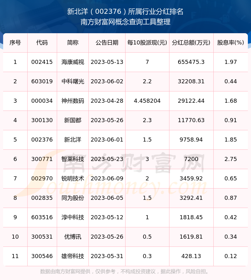 二、新北洋002376行業(yè)分紅排名
