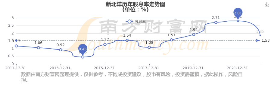 新北洋最新一次公布的分紅方案:10派1.5元。