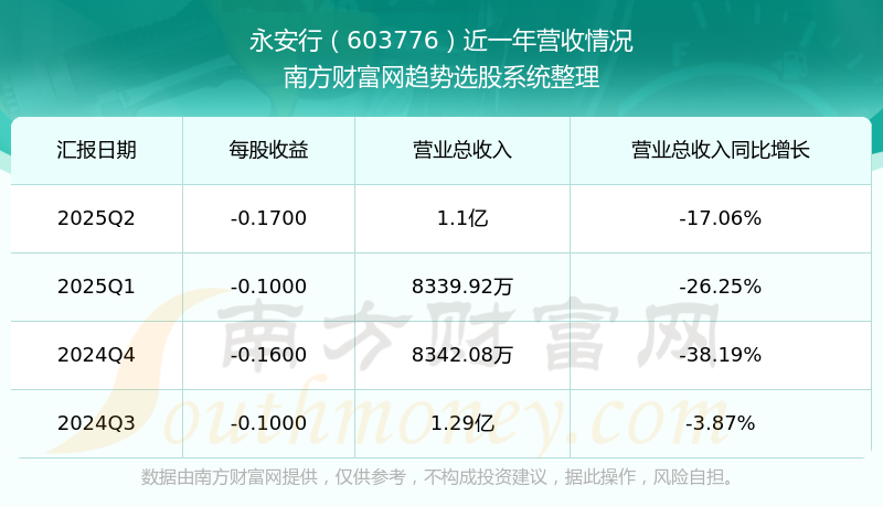 于2025年第二季度,永安行披露了其業(yè)績表現(xiàn),其中主營業(yè)務(wù)收入1.1億元,相較于去年同期-17.06%。此外,公司歸屬于母公司的凈利潤為-4085.06萬元,同比增長了-1452.46%。在扣除所有非經(jīng)常性損益后,凈利潤-4166.38萬元,同比增長-100.71%。