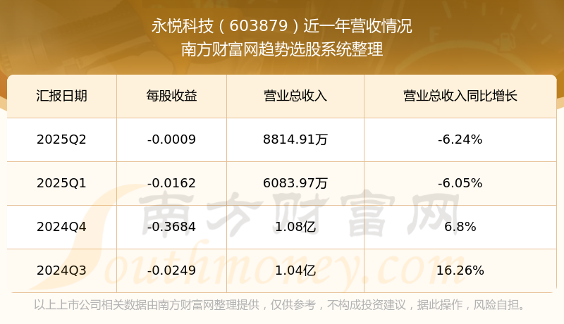 一、永悅科技(603879)股票營收情況
