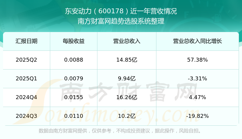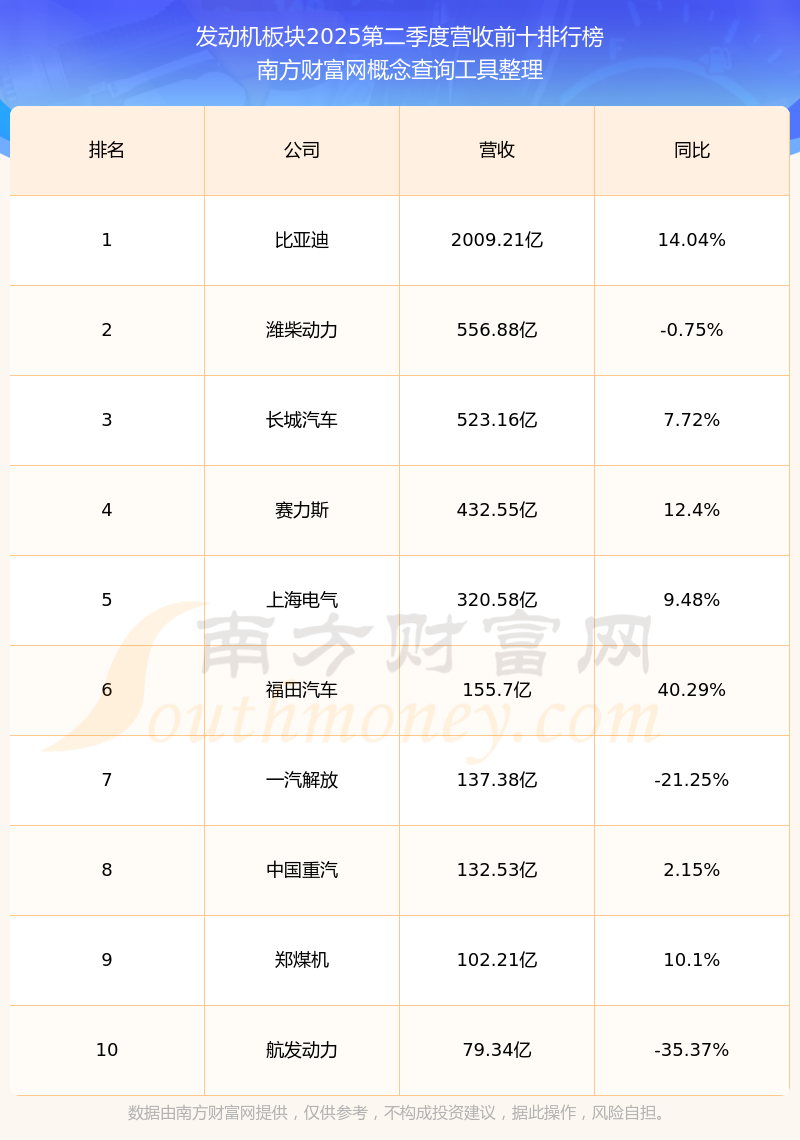 按照南方財(cái)富網(wǎng)概念查詢工具統(tǒng)計(jì),該股所屬板塊為發(fā)動(dòng)機(jī)板塊,該板塊共有118只股票,東安動(dòng)力2025第二季度營(yíng)收在該板塊中排名為第37名,該板塊2025第二季度營(yíng)收排名前十的股票如下表: