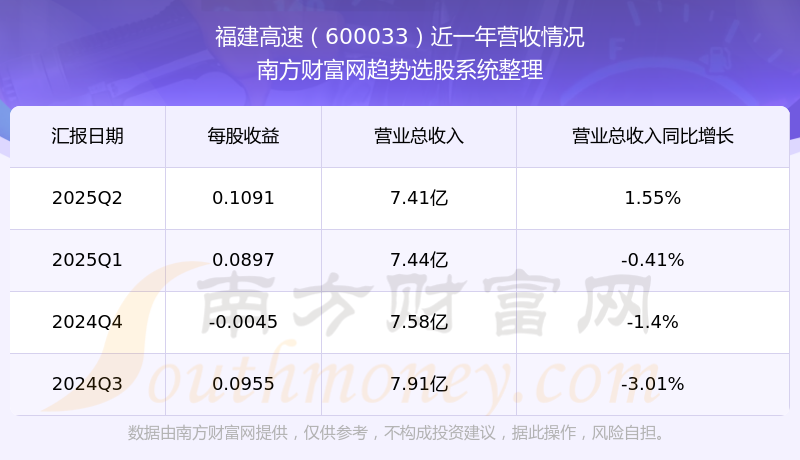 財報顯示,2025年第二季度福建高速營收7.41億元,同比增長1.55%,凈利潤2.99億元,同比增長4.26%。