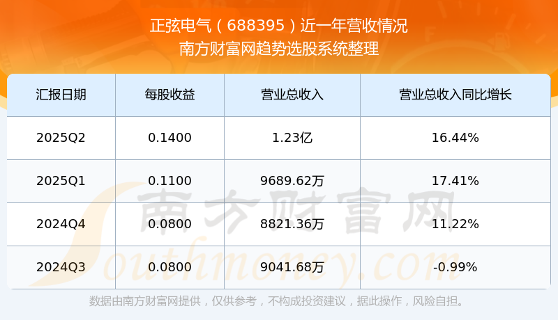 正弦電氣披露了2025年第二季度財(cái)報(bào)。報(bào)告顯示,正弦電氣2025年第二季度實(shí)現(xiàn)營(yíng)收1.23億元,同比16.44%;歸母凈利潤(rùn)1271.86萬元,同比-17.08%。