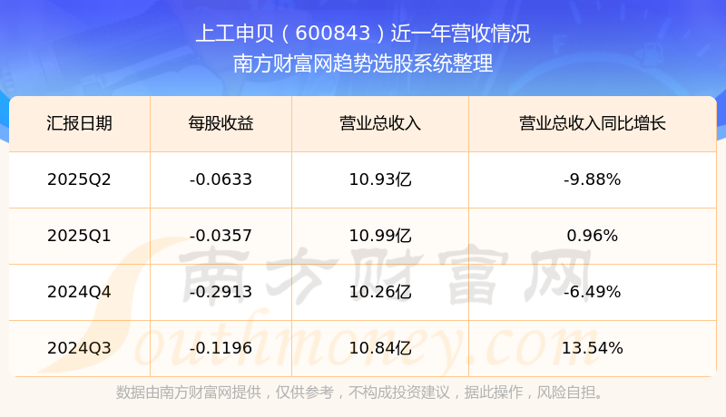 2025年第二季度,上工申貝營收同比-9.88%,凈利潤同比-249.35%。